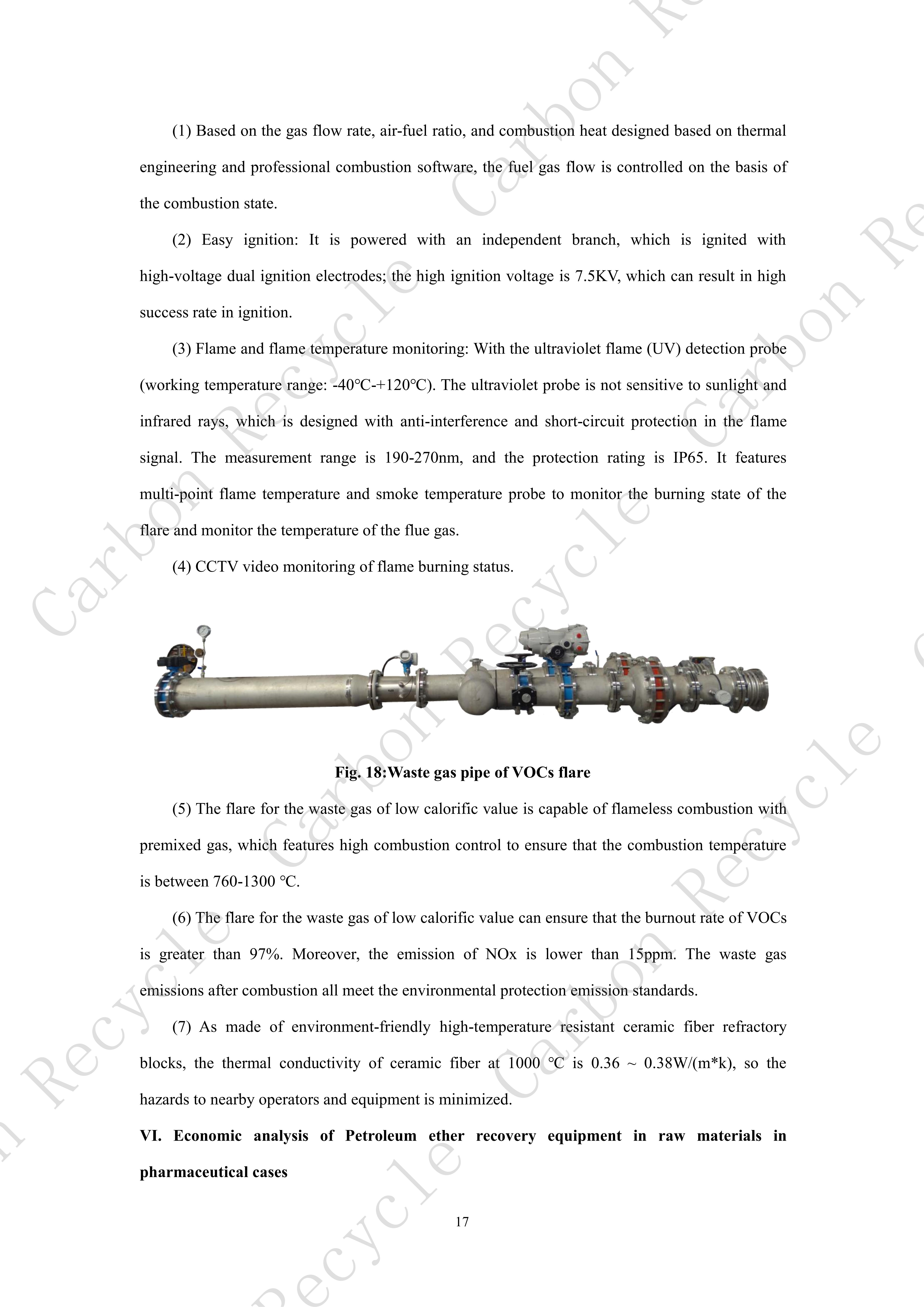The explosion-proof flare falls into the category the destructive combination of VOCs (Category B). Compared with the Regenerative Thermal Oxidizer (RTO) and Regenerative Catalytic Oxidizer (RCO) of the same category (Category B), it features higher safety in use, which has three most important safety features: