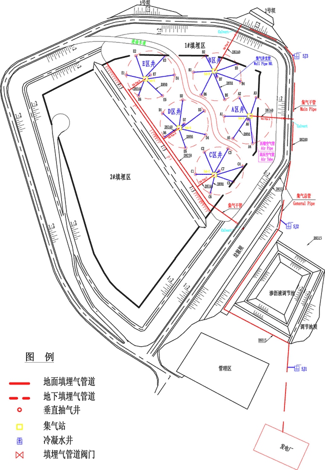本工程中心擁有垂直豎井、水平橫井、橫豎井結(jié)合等多種技術(shù)方案,可以根據(jù)垃圾填埋場實際狀況,提出符合實際情況的氣體收集方案,并實施包括打井、管道鋪設(shè)與連接在內(nèi)的工程建設(shè)工作。為了確保提高對填埋場內(nèi)部的氣體收集率,本中心還擁有“氣動排水”、“井內(nèi)水位測量”、“垃圾堆體內(nèi)部參數(shù)測量”等專有技術(shù),以保證氣體收集系統(tǒng)的高效運行。